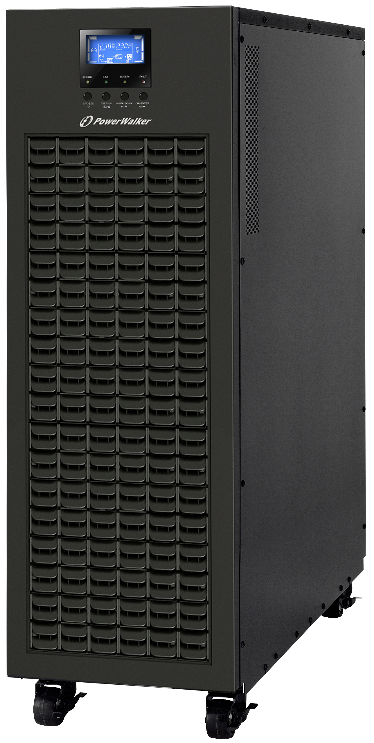 The wide input voltage and frequency ranges allow operation in unstable networks and provide generator support. Multiple accessories, including battery packs and communication cards, enhance the functionality of the UPS and allow a greater backup time. The system can be monitored locally via an LCD panel or remotely via the PowerWalker ViewPower software.